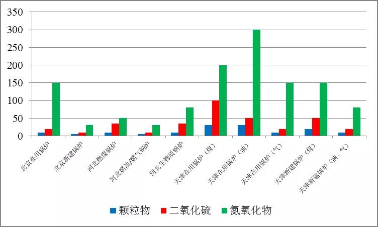 圖2 京津冀地區(qū)鍋爐污染物排放標(biāo)準(zhǔn)